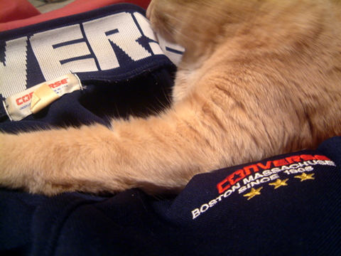 ああー、ああー、ああー、ああー。しらんなんだ。 今日の今日までしらなんだ。 皆さん知ってはりました? コンヴァースが話すっていう動詞の意味があったのを。 よくよく思ったら、カンヴァーセイション。(--)しーん。 疑わしいのは、話すって誰と?もののけ?それとも人間? まぁ両方なんやろうけど、コンヴァース深いわ。 二つの違う意味があるんやけども、またそれが皮肉でおもしろい。 ①コンヴァース(動詞)話しをする。霊的に交わる。 ①コンヴァース(名詞)談話、霊的交流、社会的相互作用。 ②コンヴァース(副詞)意見・陳述などが逆の ②コンヴァース(名詞)逆、ハンタイ、反対語(表現) 笑った。そういうことやったんやね。 私の半分の分身。 私の17~18年物のコンヴァースのジャージ。 ここ5年できた覚えがない。10年でもあやしい。 16年前にアメリカに来た頃はよく来てた。 飛び入り参加のナイジョー。 どちらもお宝。 2010.11.24 Wed 15:06:07