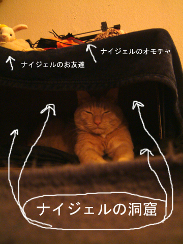 今日は感謝祭。 感謝のお祭り。 数年前からアメリカのパンプキンパイが美味しいと思いだした。 いや、実際おいしいんやけどね。 去年のこの時期仕事場でみた光景にトラウマ。 感謝祭とクリスマスの時だけ急に優しくなる人々。 年中もっとけ、Thanksgivingの心。 そういう人等のThanks-givingはノーサンキューで受け取らなくてもいいんでしょうか? と、一瞬思ってみた。 一時的なものを一方的にGivingされても、いらんいらんそんなもん。 この世の悪夢、嗚呼おぞましい、空々しい・寒々しい・白々しい。 だから今年は休暇をとってそういう人々をさけてみた。 4連休最高、MYプライベートライフ充実中。 そんな私、さっきまで「どですかでん」。 只今「北の国から’83冬・’84夏」鑑賞中。 コドモがまだラーメン食べてる途中でしょうが! 誠意ってなにかね? ナイジョーは2歳になって以来この洞窟が大のお気に入り。 もはや私とは寝てくれない。洞窟ズームイン! 2011.11.24 Thu 17:48:34