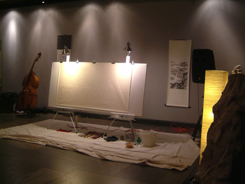 今日は晶子さんとコラボペインティングの日でした。ミュージシャン3名とのコラボでもあります(45分間)。思い出は晶子さんとコラボができて楽しかった。終った後は、なんだかものすごい拍手で始終にっこり笑顔の私(心はハテナ?えっ!そうなん!!??拍手でか!)。拍手のパワーってすごいね。チョー嬉しすぎるやないか。感動。45分で2枚。 で、ココだけの話しなんですけど、正直音楽は最初と最後しか聞こえてきませんでした。なんかいろいろパーツパーツには聞こえてたかもしれませんが、あまりはっきりとは覚えてないです。終わり近くで蚊の鳴くようなか細い声が聞こえて来たんです。「あっ!この声知ってる!前に聞いたことがある!!そう言えば・・・」それは昨日のことでした。「歌になったらだいたい終了ね。」とか云々。あの声がどこからともなく聞こえてきた時はびっくりしましたが「時間やで~」みたいな。・・・セーフ。 会場がこんなことになっていようとは思いもしなかった! ステージ 還暦60キャンドル。 誰の誕生日かと申しますと、蚊の鳴くようなか細い歌声の持ち主フレンチ翁。 白装束の女(剣の舞) 注意:私は黒子ですので私ではありません。 それでは皆様またの機会をたのしみに、 本日はどうもありがとうございました。 ドンドンドン 2011.11.25 Fri 16:43:04