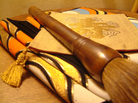 先週の日曜日に買った「帯」をつけてみた。およよ@@。素敵。 教訓「骨董は誰もいないときに1人でそっと取り出すべし」 魂というものはつかみどころがないものだが、一瞬にして「魂をもってやがる」と感じるものがある。呼ばれて行って出合ってみて、その瞬間から語りかけてくるやつら。いろん声が聞こえてやかましいが、姿かたちは上品でなんとも沈勇。骨董のもつエネルギーはすごい。いろんなエネルギーが詰まってる。呼ばれて行って出合ってみて、骨董とは自分発見の源だと気付く今日この頃。 眺めるだけってのはありえない。使いこなしてやるわいな。でもその前にその骨董品たちと語り合う時間が私は好き。そのエナジーにまけないような対等なエナジーを私自身が・私自身で作り上げていくのがこれからの課題。えらいもんに出合ってしまった。でもこれからが楽しみで仕方がない。 強烈なサイケデリックな帯。 頂きものの大筆。袱紗にのせて受け取りの儀式。 2011.05.07 Sat 16:47:13