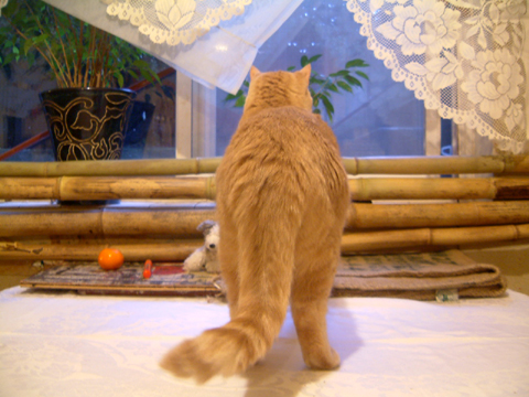 ダイニングルーム(作業場)をすっきりさせたい乃計画。 前にもらった竹を終に部屋の一部にしてしまいました。 題して「ナイジョーの庭 私「ナイジョー。できたよ~。どうジョイ。」 内助「あれ?何アレ?」 私「なんか日本庭園っぽくていいなんじゃない?」 ちょっち歩き出す君。 自家製爪とぎ椅子の後ろで見守る婆や的存在。 写真撮ってるのばれて急に突撃をくらう。 うわぉっ! 内助「今撮ってたんちゃうん!」 私「ええからちょっと試してきて。早く早く。」 内助「えぇ~そうなん?」 内助「なんやねんアレ?入られヘン(困惑気味)」 私「後ろ脚でまたぐねん」 ついでに奥部屋のナイジョーの渓谷の高さをレベルアップ。 こちらはすでにお気に入りで見晴らしがさらにいいことでしょう。 私の方もなんかムズムズ。 2011.03.18 Fri 14:49:32