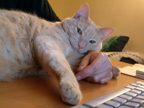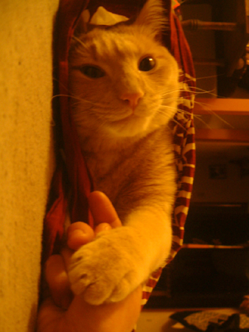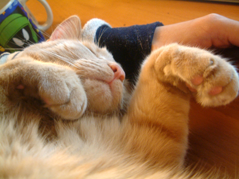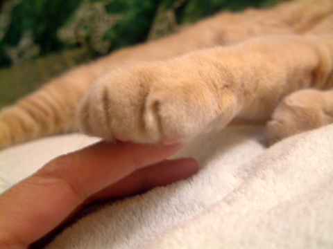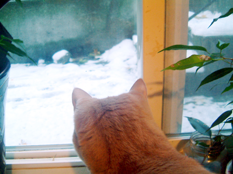 アレは確か一年前。ある日突然私の目の前に子猫ちゃん が現れた。 ナイジョーが来て丸一年です。 今日は雪で仕事が早く終わったので、ナイジョーもびっくり。 「え?もお帰ってきたん?」的態度で首だけでコッチをみる。 リビングでどでーんと自分専用のベッドで寝てる。 贅沢に使ってるねぇ、知ってるねぇと感心。 それ以来、自分の一年記念だと知ってか甘えたい放題の猫。 それでも、ようこそおいでくださいました、と婆やの心。 雪を眺める満一歳の猫(初雪を見る乃巻き)。 今日の最低気温-11℃。温もりコネクティッド。 一年目の余裕。俺俺。 あまりにも寒いので薄手のセーターを3枚(10ドル)買ってしまった。 あと3枚ぐらい買いたいくらい。 2010.11.23 Tue 15:59:54