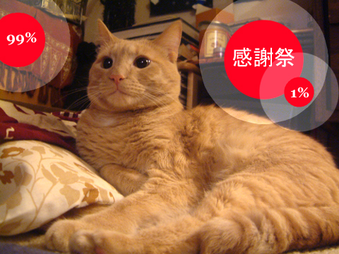 今日夕方とか外でたけど4℃とか。 全然余裕であったかいくらい。 もたれる猫 99%と1% タバコ徐々にやめようかしらん? 私A「やめて3ヶ月後とかしたら何かご褒美くれる?」 私B「ご褒美って健康な体がご褒美やないの。」 私A「そうなんやけど、なんか物質的なものがいい。」 私B「物質的なものって、体がそうやないの。」 私A「そんなんじゃなくて、お金でかえるもの。」 私B「タバコ減らしてそのお金で買ったら?」 私A「そうやなぁ・・・。薄手のセーターがいい。」 私B「しつこいなぁ~。どんなけ好きやねん。」 とりあえず「水」を一日10杯飲もう。 血液サラサラの本を再読。 マインドコントロールされやすいタイプ。 ※宗教お断り。 2010.11.25 Thu 16:55:42