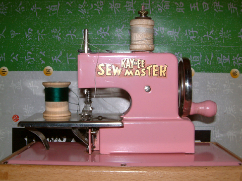 オモチャミシン。 クリーニング屋のコリアンのオバちゃんから$15で買い取る。 BERLIN MADE IN GERMANY U S ZONE KAY AN EE SEW MASTER *The KAYandEE Corporation of America manufactured toy sewing machines in Berlin, Germany in the U.S. Zone after World War II. This machine was made in the 1950's. Many sewing machines were offered in the Montgomery Ward Christmas catalogs from 1954 through 1963. カムサハムニダ。 2010.04.22 Thu 17:09:16
