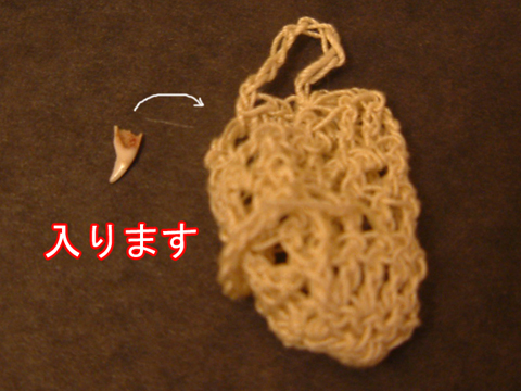 緊急報告・緊急報告。 ナイジョーの左下の乳歯がなくなってました! ( ̄□ ̄;)ハアッ・・・ハヤッ!!! (||||゚ _ ゚ ;)ヤバッ! イツッ?! 即効、猫のトイレをあさる女 ε≡ε≡ε≡ 。収穫なし。時は待つのみ。 明日に期待。夕方の食事が怪しかったです、どうも(嘘・知らんけど)。 まだまだ残り1つある、と思いきや、 新たに上の歯の永久歯が2本飛び出してきてます! まさにこれは運動会状態で展開が速いです。 写真を撮ろうとがんばりましたが、こんな卑怯な顔するのでやる気なくしました。 今日、晶子さんからナイジョーの「乳歯ケース」を編んでもらいました。 しかもこの作品、レース編みでの処女作。しかも自己流スパイラル。 どうもありがと。おかげでナイジョーはとっても変な子に育っております。 |