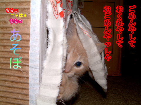昨日からポスター作ってんですが、もお今日はやめた。 一旦中止。なんだか面白くない。 ゆっくり本でも読むとしよう。 もしくは1人ダンス甲子園。 ナイジョーが「若い」ころ↑ (6週間目ぐらい) 今もこの社にはいって隠れて遊んでくれます。 君はまだ小さいがでかい。今なんて「おきなー」な顔つき。 ぎょっ。 魚屋のおっさんに怒られた・ぎょっ。 魚屋のおっさんが屁をこいた・ぶりっ。 ああ~ぶりのテリヤキ、なつかし~。 2010.03.16 Tue 21:00:15