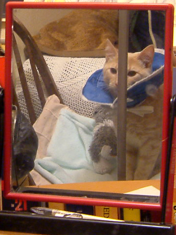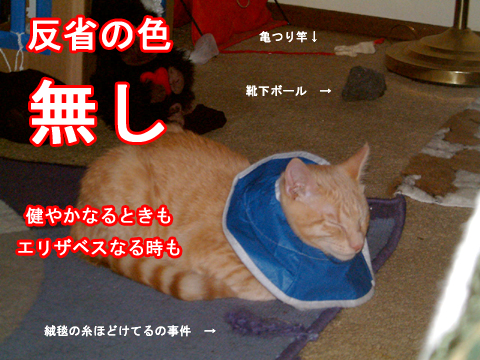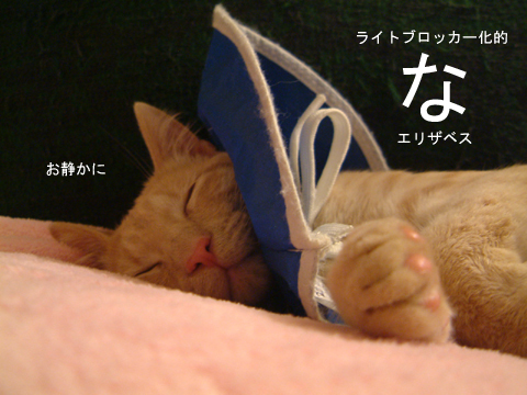 E-COLLAR DAY 9 今日はほとんど首フリー。つけてたの5分とか。(気持ち気持ち) 明日は最低期限の10日目です。君はエリザベス離れができるのか。 オモチャ箱に入れておこう。きっと持ち出してくるに違いない。 「つけて~」 最近のあそび 用意するもの:人間2人、猫一匹(ヤング)、靴下ボール硬め。 3mぐらい間隔をあけて人間が正坐。 人間が靴下ボールを転がしたり、投げたり、拾ったり。 猫がそれを追いかけたり、キャッチしたり(天と地)、カットしたり。 猫が遊びモードであればボールを持ってきてくれたり、ドロップしてくれたり。 恐縮です。一生懸命いい球ころがしますんで。(ああ~失敗。ごめ~ん。) 猫のリズムを壊す女。球技が苦手な女。見守られる女。応援される女。 そんなこんなで30分。ナイジョー恍惚。アスリートでハイ。 BOOTSCAMPに近いものがあります。私が辛い。 。。。。。。。。。。。。。。。。。。。。。。。。。。。。。。。 去勢手術その①ブルーなエリザベス (写真あり) 去勢手術その②物好き (写真あり) 去勢手術その③発明王 (写真あり) 去勢手術その④噂のバニー (写真あり) 去勢手術のその後⑤鈴 (写真あり) 去勢手術のその後⑥かぶり (写真あり) 去勢手術のその後⑦関係してます (写真あり) 去勢手術のその後⑧Avatar (写真あり) 2010.03.12 Fri 20:55:35