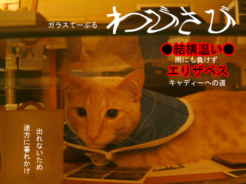 E-Collar 5日目。ゆるゆるなくせに敢えてとらない。 どさくさにまぎれて、猫の日にジャスティンから買ってもらった首輪をつけてみた。またこの鈴がでかい。全然小粋じゃないのよ。うるさい。ナイジョーもエリザベスをつけてるときはモーマンタイのくせして、エリザベスを外すと急に鈴の存在が気になって、鈴の息の根をとめようとする。かぶりつき。首輪があごにひっかかって危ない。仕方がない、エリザベスをつけてもらおう。やはり何かが矛盾している。 今日ペットコ行ってきた。ついでにヴァリュ・ヴィレも寄ってみた。何も買わず。 1つ手に握ってしまうと雪崩のように買ってしまう恐れあり。 最近また寒くなってきた。 。。。。。。。。。。。。。。。。。。。。。。。。。。。。。。。 去勢手術その①ブルーなエリザベス (写真あり) 去勢手術その②物好き (写真あり) 去勢手術その③発明王 (写真あり) 去勢手術その④噂のバニー (写真あり) |