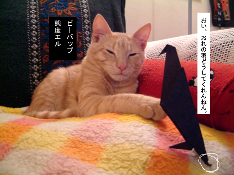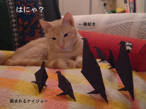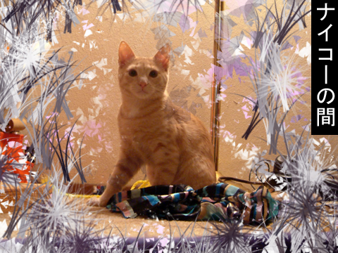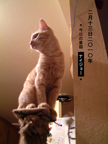 APOLO OHNO(大野)いいよね。LOOK OUT; HERE HE COMES。 ミドルネームはアントン。アントニオー! お父ちゃんのサロンはオサレ。Yuki's Diffusion。 シアトルの日系老人ホームにアポロの写真があったの今でも覚えてる。 さてさてナイジョー。 キッチンの入り口にポールをたててやったのは、かれこれ10日も前のこと。 やっと今日そのトップに小さい板をくっつけて完成。 私の肩ぐらいのたかさ。 折り紙。どんどん増えるカラスの大群。一羽、ナイジョーに脚むしられた。 ち~~~ん。観葉植物の横で療養中。ナイジョーはまだ気付いていない。 オダブツといえば、昨日幽霊がこの家に来た。天井からぶら下がってる。 幽霊なのでナイジョーにも捕まえられない。いらいらdeニャー! 今日もよく遊びました。舌でてますよ。 2010.02.13 Sat 19:36:00