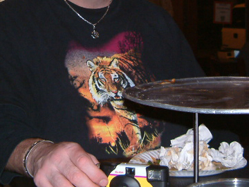 行ってきましたエヴェレット。シアトルよりかなり北。思い出:寒かったけど楽しかった。ゲームは勝。ファイティング有。流血。 もおほんとおとうちゃんの趣味ってわからんよね。今日のお父ちゃんファッションは黒地のTシャツでイラストは大阪のおばちゃんばりのトラ。お父ちゃんのエナジーのレベルがわかる。「ダレがそんなん着んねん!」って思うTシャツいっぱいあるけど、アンディーが着ますので、これからもこの手のデザインは消えてほしくないと思ってしまいました。 AndyデザインのTシャツと引き換えに絵をあげる。「これはフェアじゃない。いいのかあんなTシャツで。」ってめっちゃ着てるくせに。めっちゃ見せびらかしてたくせに、初日。ウププププ。「私はそれが欲しいんです。」そんなこんなの成立で2枚送ってくれるそうです。しかもNewデザインと一緒に。Newデザインが恐ろしい。虎やったらどうしよう。 明日おとうちゃんはカリフォルニアに帰ります。クルマで13時間。家につくまでが旅ですので、どうぞ気をつけてお帰りクダサイませ。虎。 2009.02.18 Wed 19:58:29