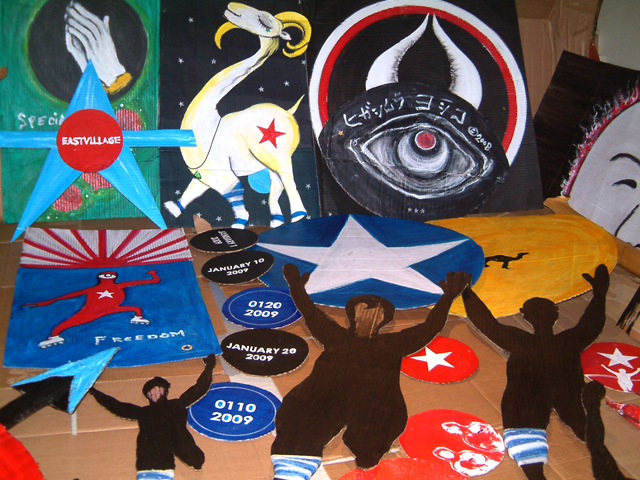 明日はカラーパーポー・ミュージカルの日。 嗚呼、自由の女神がココに来て苦戦。顔一つ目、死人みたいで怖いので、切り取ってほかした。くそぉぉ~~~!顔二つ目。これでなんとかふんばってるものの、やっぱり顔の中身が描けん。もお真っ黒でいい。終わらしたい、の一言に尽きる。 とかいいながら・・・・ 自由の女神用の角作った。 とかいいながら・・・ 自由の女神のフラフープ作った。 とかいいながら・・・ 松明はアイスクリームでヨロシク。 全く意味がわからん。そうそうはじめから意味なんてな~~~~いのでアル。 2008.12.27 Sat 17:39:56