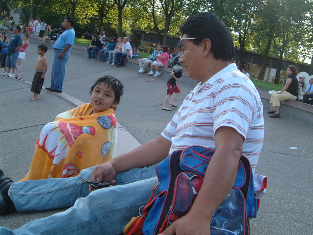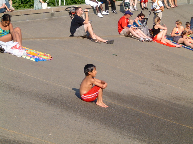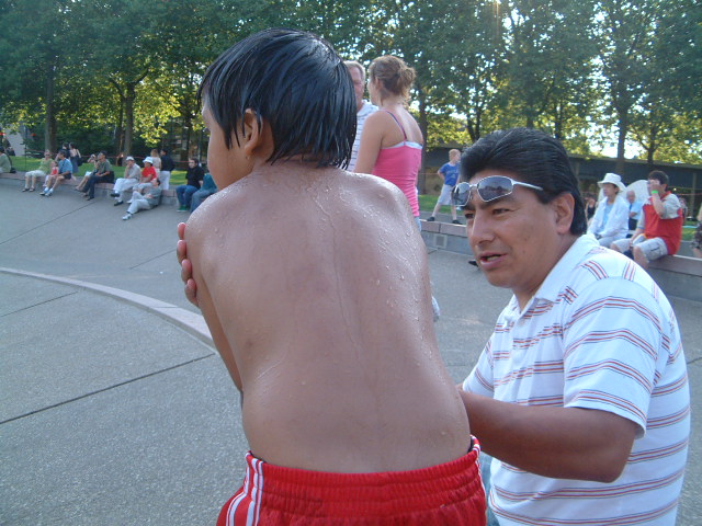 今日も最高に暑かった。94°Fと天気予報では言っていたが、どうなんだろう。今年の夏もっとも暑い日ということにしておこう。ジャスティン(今年初めてのハーフパンツを穿く)と画材屋へ行った後、午後の日差しを浴びながらシアトルセンターの噴水広場でのひととき。 彼の名前はジョシュア。 これから暴れまくります。 アウト・オブ・フレイムです。握りこぶしが情熱の程度を物語ります。 独りになりたくなるときだってあります。瞑想に入ります。 激水に打たれるのを覚悟のようでした。お見事です。 恍惚と踊ります。 一大決心を決めたかのようです。いざ出陣。 激水が彼の「めん玉」を直撃!凄いタイミングでした。 ブルブル震えが。踏んだり蹴ったりです。冬到来。 笑顔再び。めでたし、めでたし。 グラシアス、アディオス、アミーゴ。 2008.08.16 Sat 17:48:37