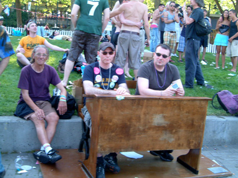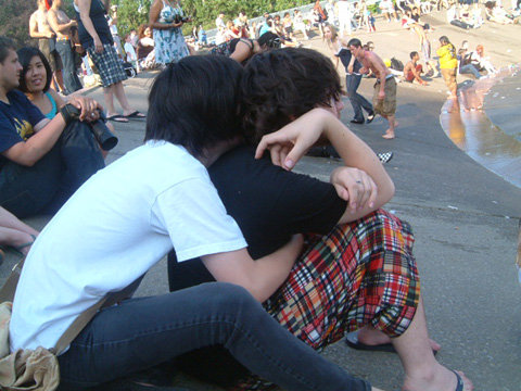 今日も昨日に続き真夏。今日のメインイヴェントはなんつってもゲイパレード。今年からゲイの街キャピタルヒルでパレードはやらず、ダウンタウンからクイーンアン(シアトルセンター)までになったとかで、行って参りました。私達がついた頃すっかりパレードは当然のことながら終わっており(ついそこやから行くのが遅くなる、しっかり夕方のNewsも見たし、それで思い出した感じ)皆さん噴水広場でたのしまれてました。こんな感じ:↓ 盛り上がってます。 薔薇は造花でした。 元気がいいです。ヤングパワー・レインボー。 重みがありますね。きっといろんな事を経験なさったんでしょう。頭がさがります。会釈。 隣にいたゲイボーイです。この後噴水に飛び込む飛び込まないでちょっともめます。喧嘩の後はホッペにチュでした。 初めて出逢ったぁ~~~。 ハンサムボーイ。NEWSに映ってるの発見!10時から参加。ゲイは早起き。 戯れる彼たち。楽しそうです。思わず笑顔がこぼれますね。ウふふ。 モズラムな観光者。 ==================================================== official SEATTLE PRIDE: http://www.seattlepride.org/ ==================================================== もっとあるよ↓ PR 2008.06.29 Sun 20:53:08