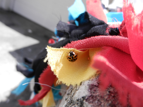 今日は明日(七夕用)のシルクちゃんたちを日光浴させました。 殺菌もかねて、いや~な匂い消しが目的。 これら、明日の七夕に晶子さんとこでディスプレイされます。 するとそこへてんとう虫君がやってきた。 このてんとう虫、シルクで遊んだ後どっか飛んでったくせに、、、また数分後にもどってきた。 気がつくと私のカメラにのっかってて、びっくり。あせるぅー。 5色ちゃんだけ日光浴をさせるのは申し訳ないんで、今までのシルクちゃんたちも日光浴。 気持ちいいねぇ~寝転びたいわ。 我ながらこんなの大好き。 シアトルの夏。 変な虫発見! さぁ、帰りますよ。 注:キャベツではありません。 注:ゴミでもありません。 約2時間の日向ぼっこでした。 写真撮影係と日なた干し番人で私は汗だく。 おかげサマーで太陽のいい匂いがするわ。 帰ってきて約2時間のお昼ね。 その後友達のカフェで約2時間Ciciとお喋り。 只今洗濯中。 ナイジョーも七夕。 読みかけてた本を押さえてくれてます。 なんて素晴らしい御子なんでしょうか。 ありがえたいねぇぇぇ~~~。 2012.07.06 Fri 15:43:58