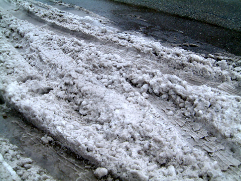 昨日の大雪ストームにはがっかりでしたが、今日はなんと Ice storm がやってきたのです!今日も案の定仕事へ行く気もなく、ぶらぶらパジャマのまま外へ出かけてみました。みなさんしってますか、Freezing Rainって?日本語でいうと「雨氷」この雨氷が降る音で今日は目が覚めたくらい。雨氷を体験しよう。 @@;7:45分に目撃。 でた~!因縁のバス#15番。 何やら向うの方からぞろぞろと人々が歩いてるなぁと思ったら、これやったんか。バス運行停止。こういうことだってあるので、雪の日は家にいませう。よかったです、これを目撃できて。自信たっぷりで仕事休み決行。 バスドライバーもギブアップ お昼にはやむだろうと予測されていた「雨氷」が9時過ぎから「雪」に変り、昨晩の冷え込みで凍った道の上に雨氷がふり、その上にまた追い討ちをかけるように雪が降るとは。昨晩のアイスロードがまたもや雪で覆いかぶさりました。結局この雪と雨氷は夕方まで続きました。強烈ー!! 何~~~!!!午後5:45分。 朝のバスが放置されたままではあ~りませんか! 淋しいバスDEショー:哀愁すら漂ってきます (アンタが一番:今日のハイライト) バスを検証。 原因はこの「鼻くそ」かと思われるような雪のカタマリ。 バスのつなぎ目、アコーディオン部分のつらら そんなこんなで、この雪・雨氷の被害は大きくて、郊外でかなりの世帯が停電(土曜日ぐらいに回復のめど、厳しいー><)。他の被害は屋根落ちるわ、木や電信柱が倒れるわ、その他諸々。実はこのアイス・ストームもちょっと方向が変ったらしく、まさかのまさか。やはりこれは記録破りだった模様です。 明日にはようやくいつもの雨が降るそうですが、これからは「洪水」が心配されてます。一難さってまた一難。そしてまた雪がふるとか云々?自然をなめんじゃねぇーぜ! 2012.01.19 Thu 17:53:02